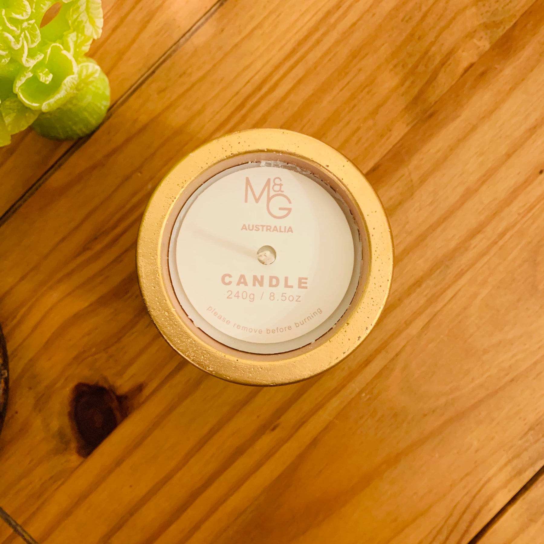 Please note, this candle does not have the paper ‘M&G Australia Candle...’ loose wax covering as indicated in the above images. This candle also is slightly sticky on the bottom label as a result of a label being put on top of it.