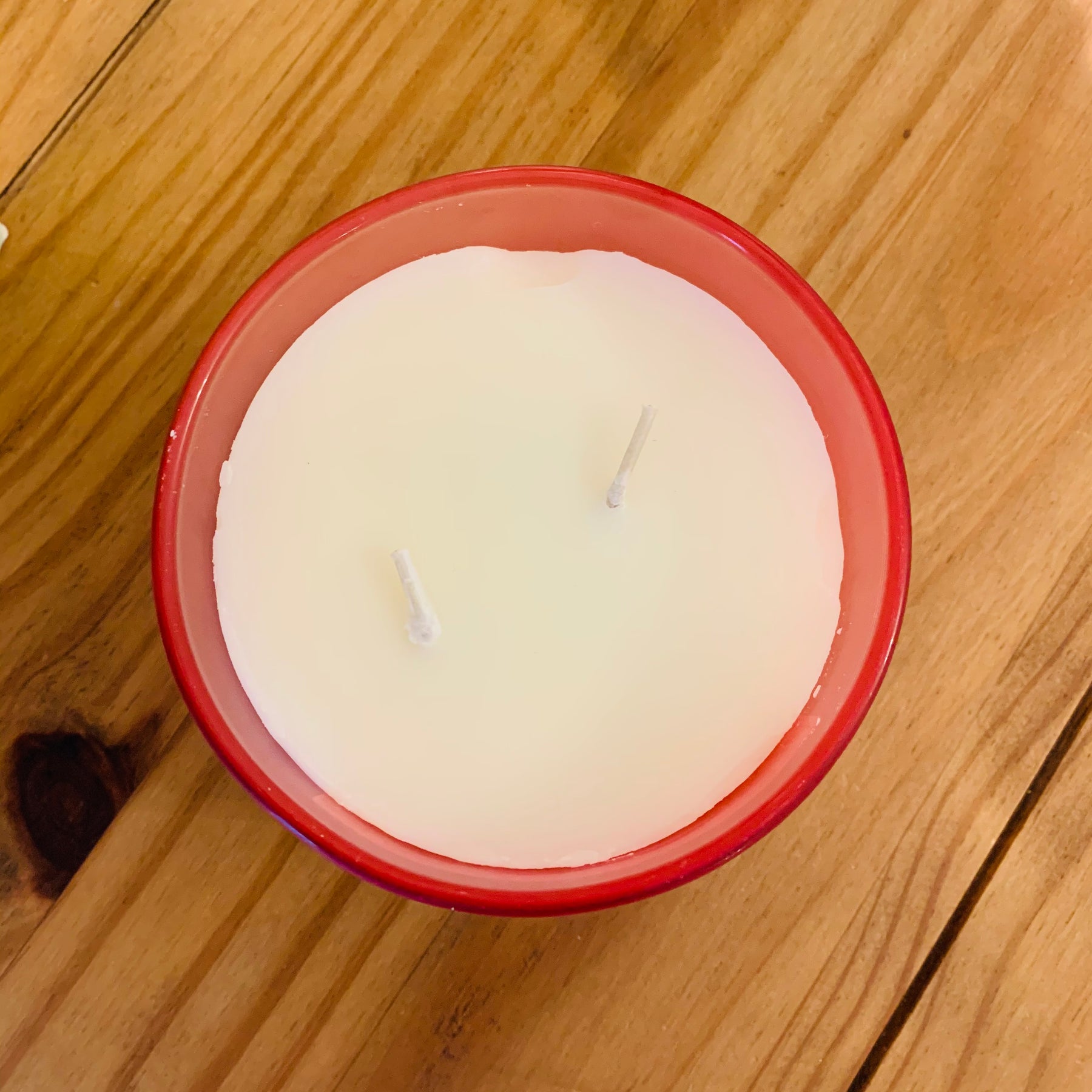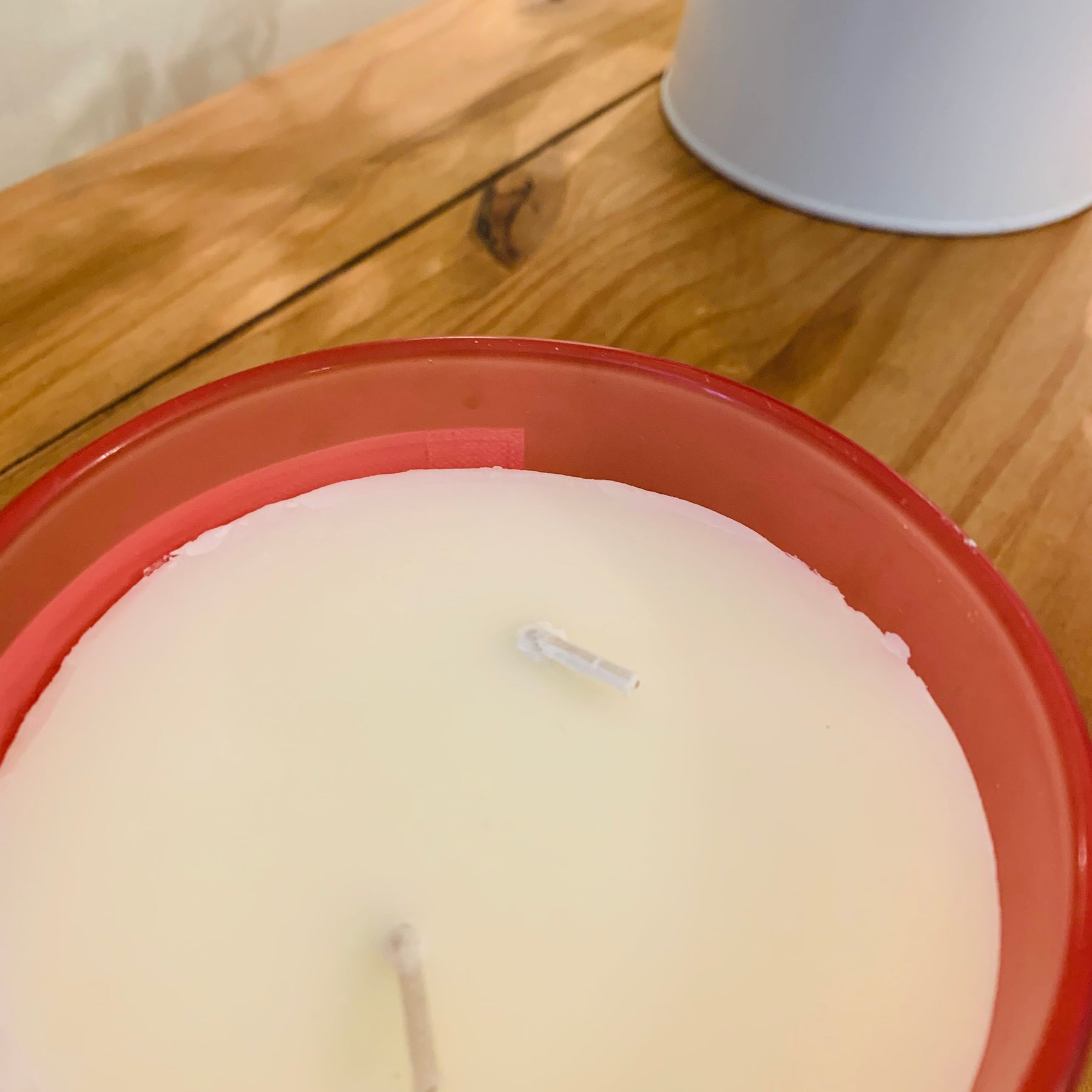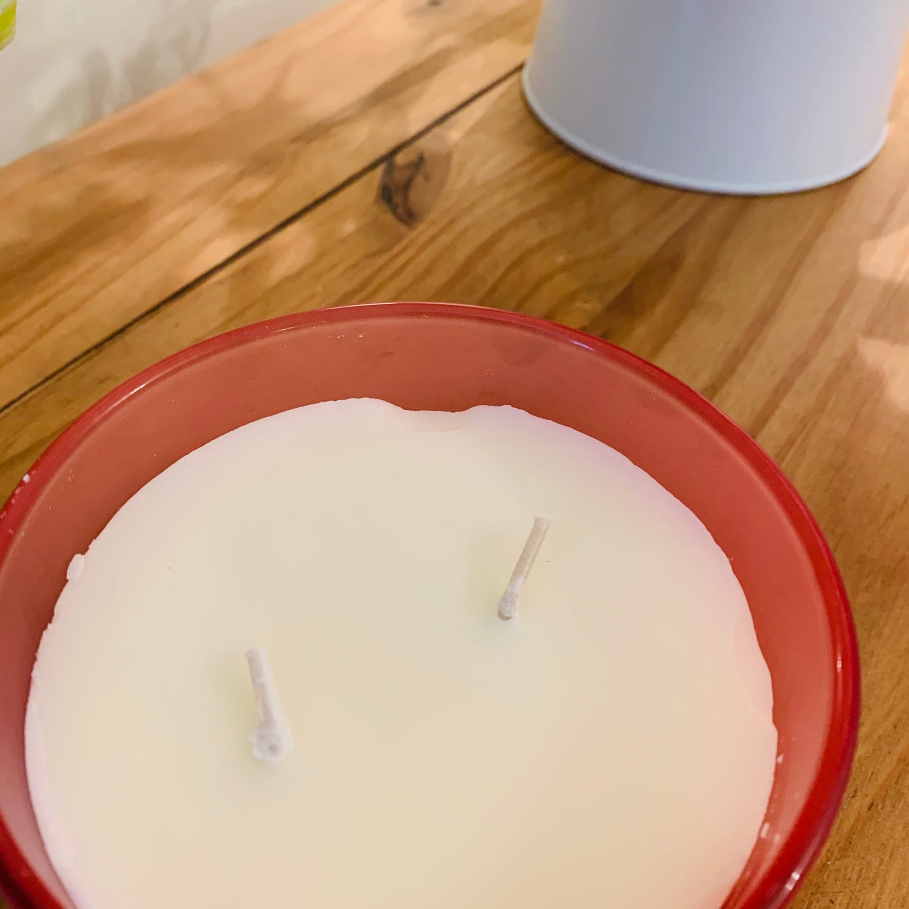Please be aware of some damage around the edge of the wax. The candle is discounted for this reason.