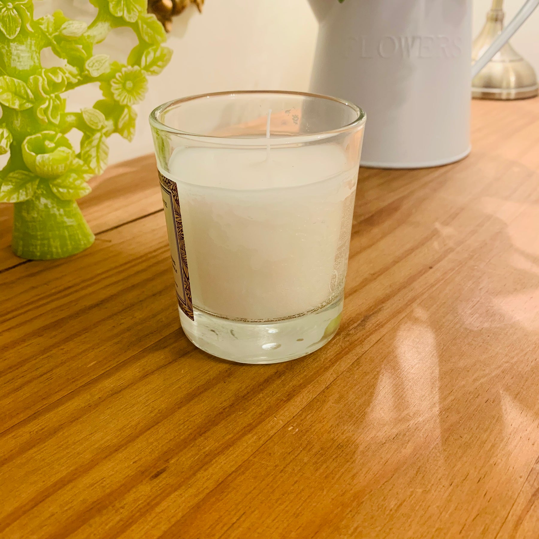 Please be aware of some bubbling in the wax next to the glass. This candle is discounted for the above reason.