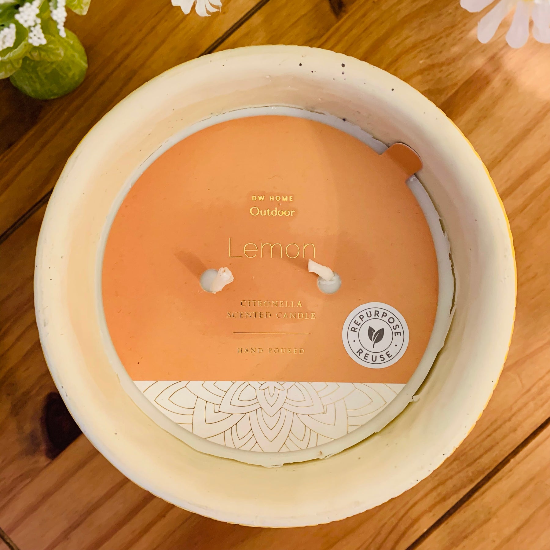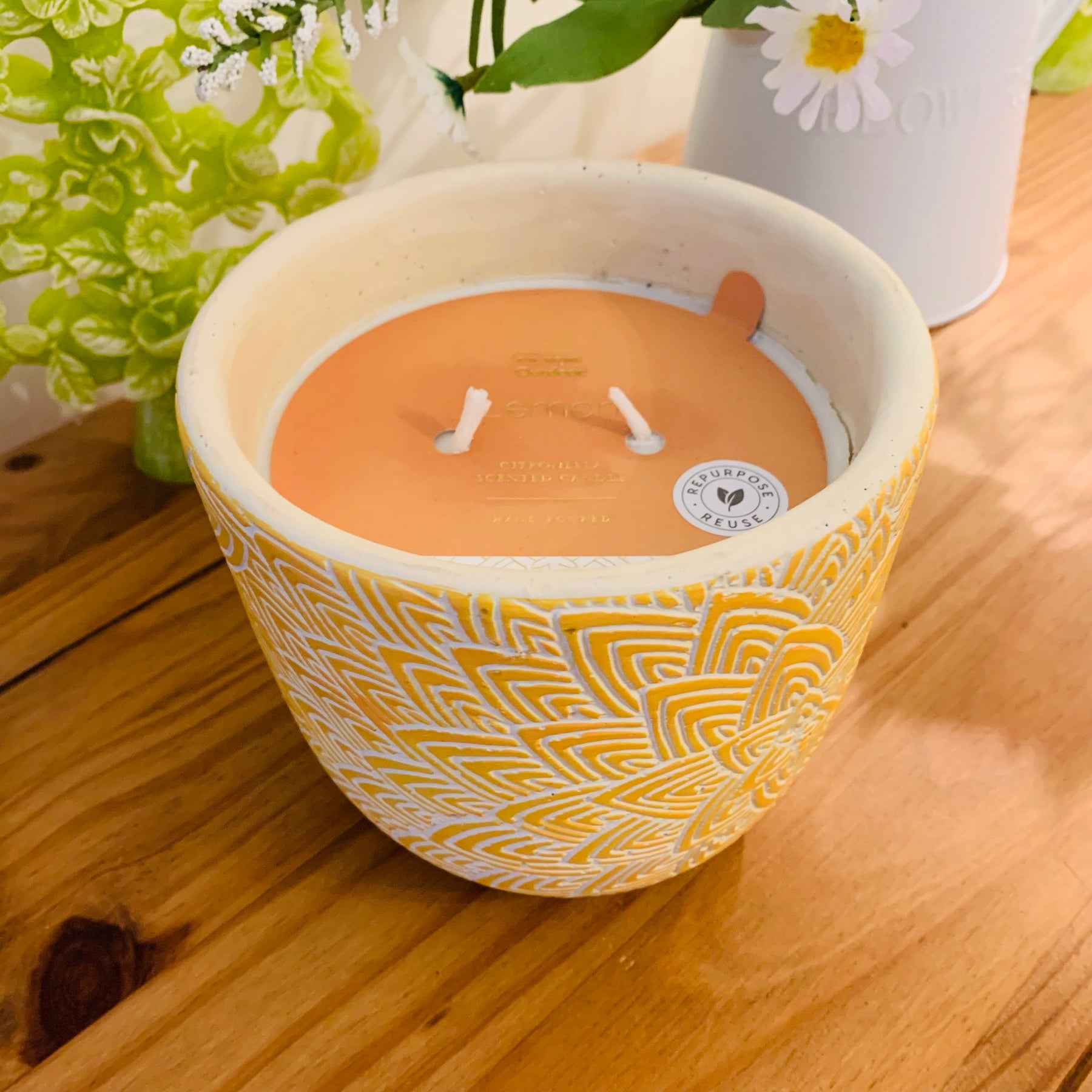 This candle puts off a citronella odour that is repellent to mosquitoes. To be used outdoors.