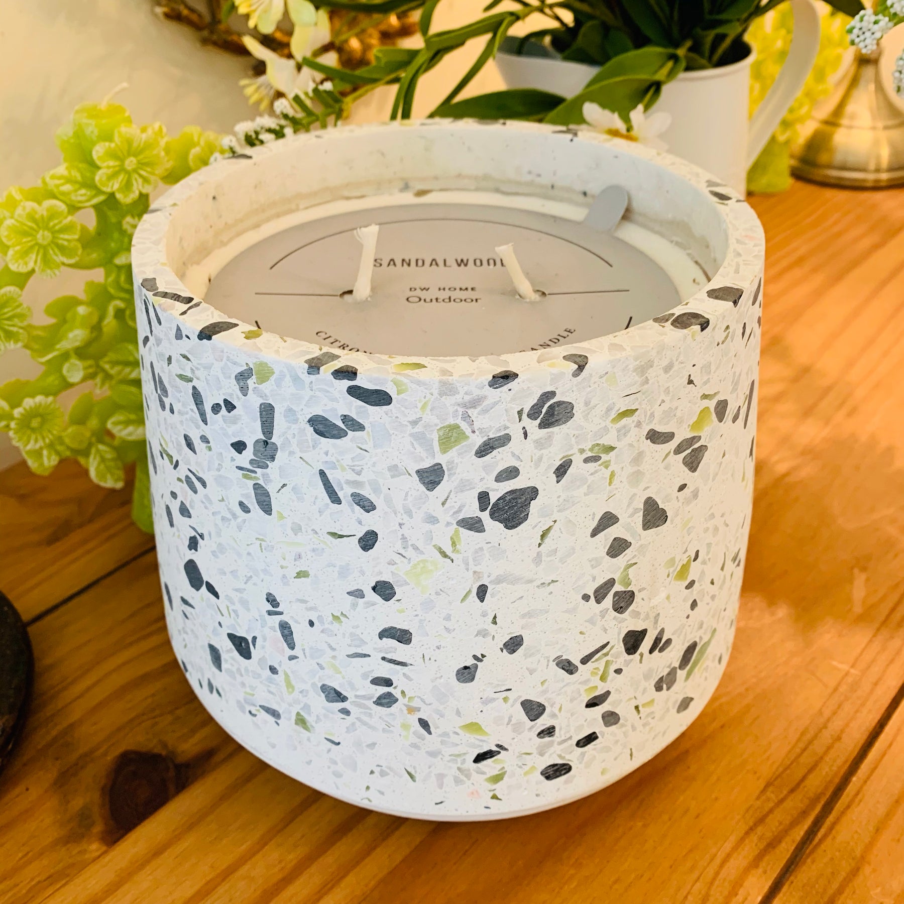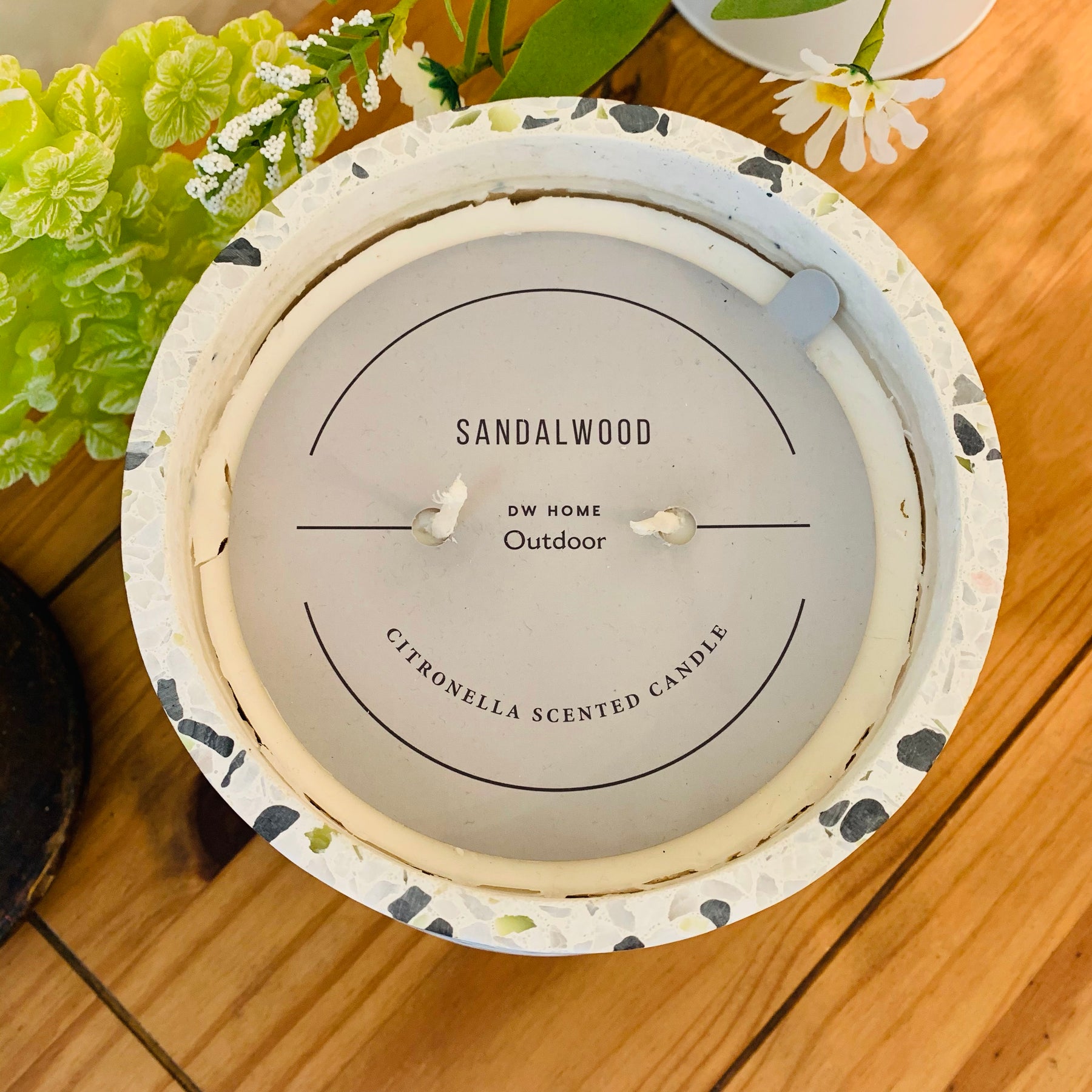 This candle puts off a citronella odour that is repellent to mosquitoes. To be used outdoors.